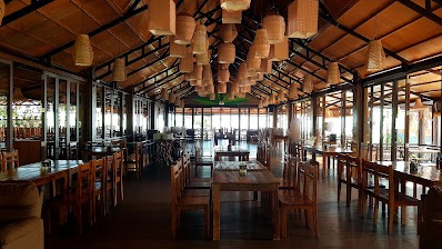 Area makan yang nyaman dan hangat dengan pencahayaan yang lembut, kursi yang nyaman, dan meja yang tertata rapi dengan peralatan makanΒ yangΒ elegan.
